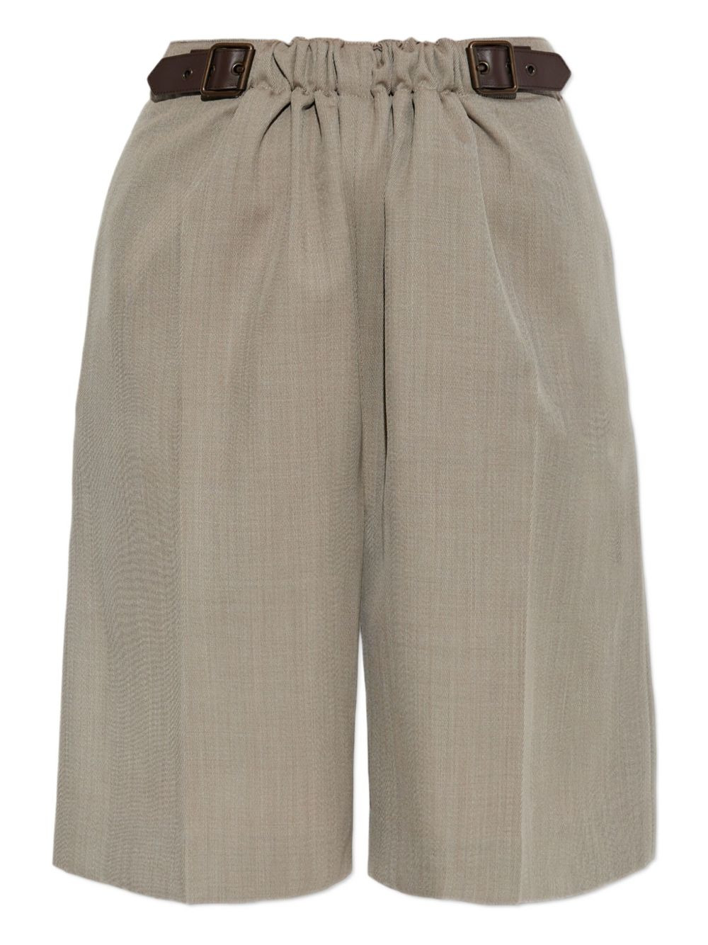 belted pleated shorts Highlights - Beige - Pleated design - Elasticated waistband - Leather belt - Buckle fastening - Welt pockets Made in Italy Composition Outer: Wool 100% Washing instructions Read Manufacturer Guidelines