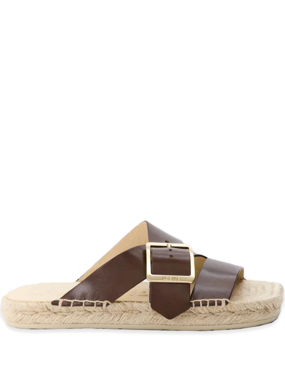 buckle-fastening espadrille slides Highlights - Loewe's leather petal espadrilles are a perfect example of craftsmanship and distinctive style, part of paula's exclusive ibiza collection. featuring an upper with a loewe-engraved metal strap and buckle, they are distinguished by the iconic petal-shaped shaped toe, a refined and recognizable detail. the hand-woven jute sole recalls the tradition of espadrilles, giving the model an authentic and sophisticated summer appeal.|calf leather bos taurus 100%, jute 100%loewe's leather petal espadrilles are a perfect example of craftsmanship and distinctive style, part of paula's exclusive ibiza collection. featuring an upper with a loewe-engraved metal strap and buckle, they are distinguished by the iconic petal-shaped shaped toe, a refined and recognizable detail. the hand-woven jute sole recalls the tradition of espadrilles, giving the model an authentic and sophisticated summer appeal.|calf leather bos taurus 100%, jute 100%calf leather bos taurus 100%, jute 100% Imported Composition Lining: Artificial Leather 100% Outer: Artificial Leather 100% Sole: Jute 100%