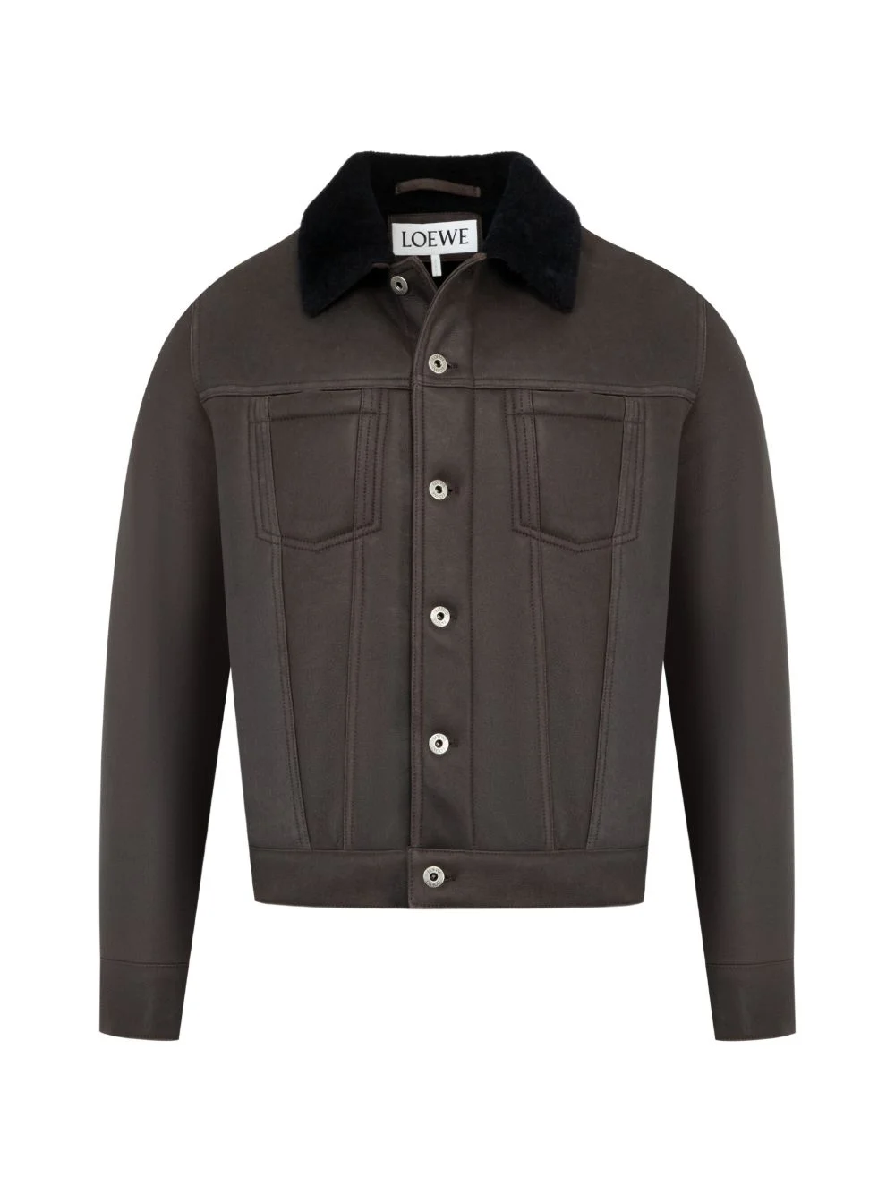 button shearling trucker jacket Highlights - Brown - Leather - Front button fastening - Chest pockets - Buttoned cuffs - Straight hem Made in Italy Composition Lambskin 100% Washing instructions Read Manufacturer Guidelines