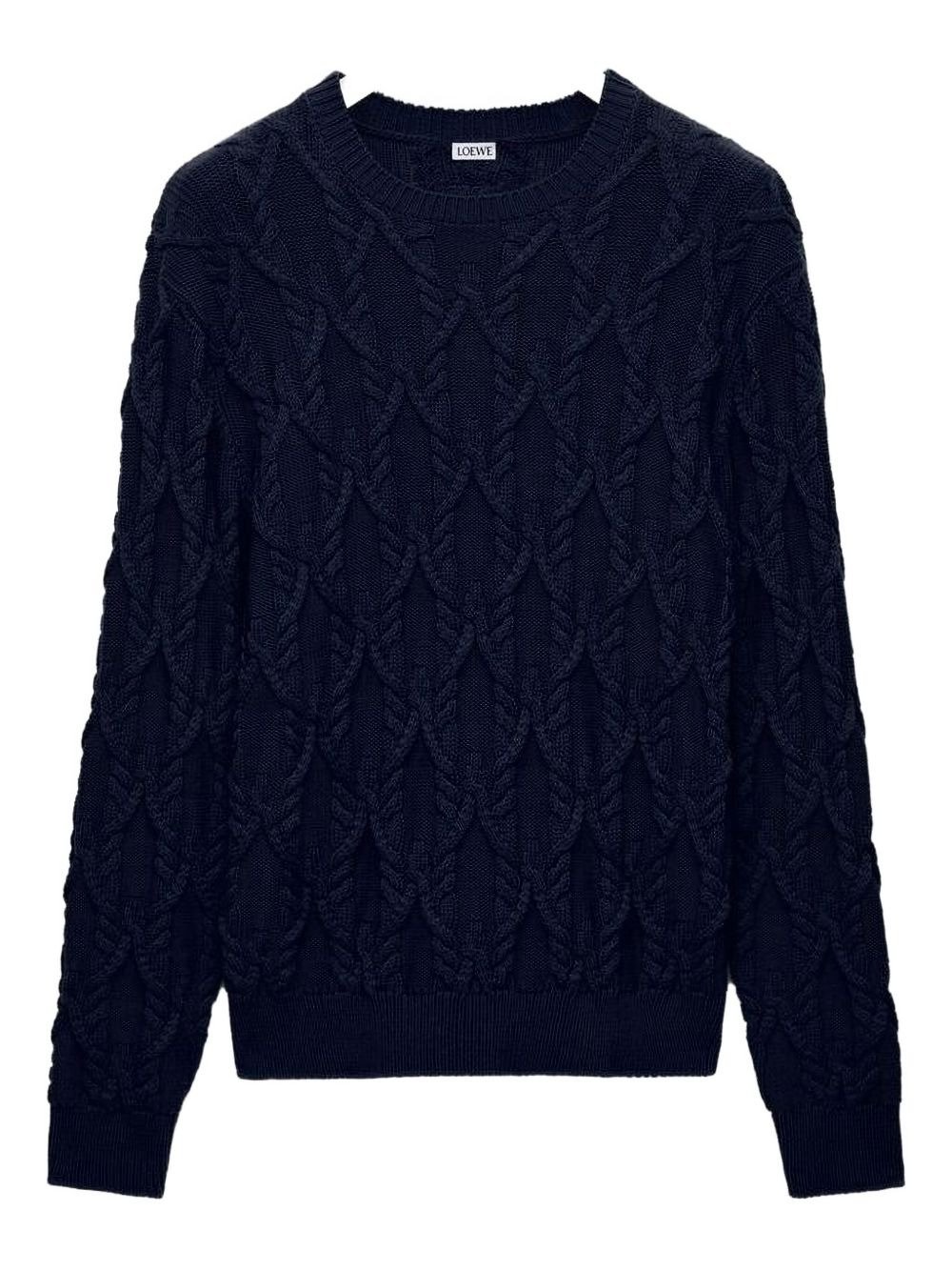 cable-knit cotton sweater Highlights - Navy blue - Cable knit - Crew neck - Long sleeves - Cotton material Imported Composition Cotton 100% Washing instructions Read Manufacturer Guidelines