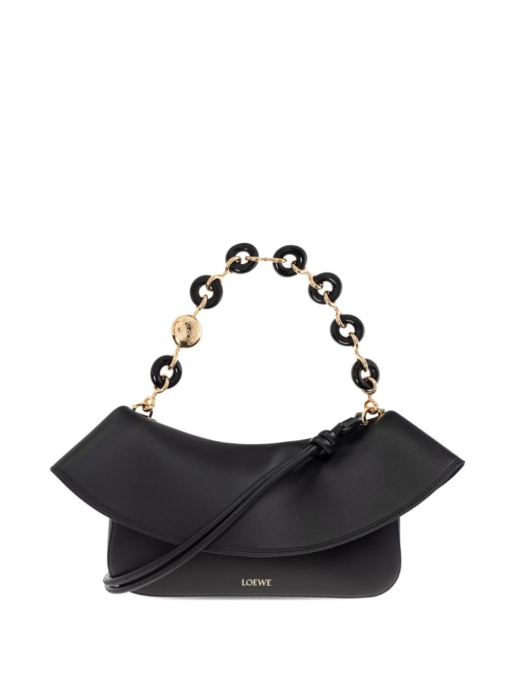 chain-link ruffled shoulder bag Highlights - Black - Open top - Applique logo Imported Composition Outer: Calf Leather 100% SIZE & FIT Measurement DEPTH 5.11 in(13 cm) HEIGHT 7.08 in(18 cm) WIDTH 10.23 in(26 cm)