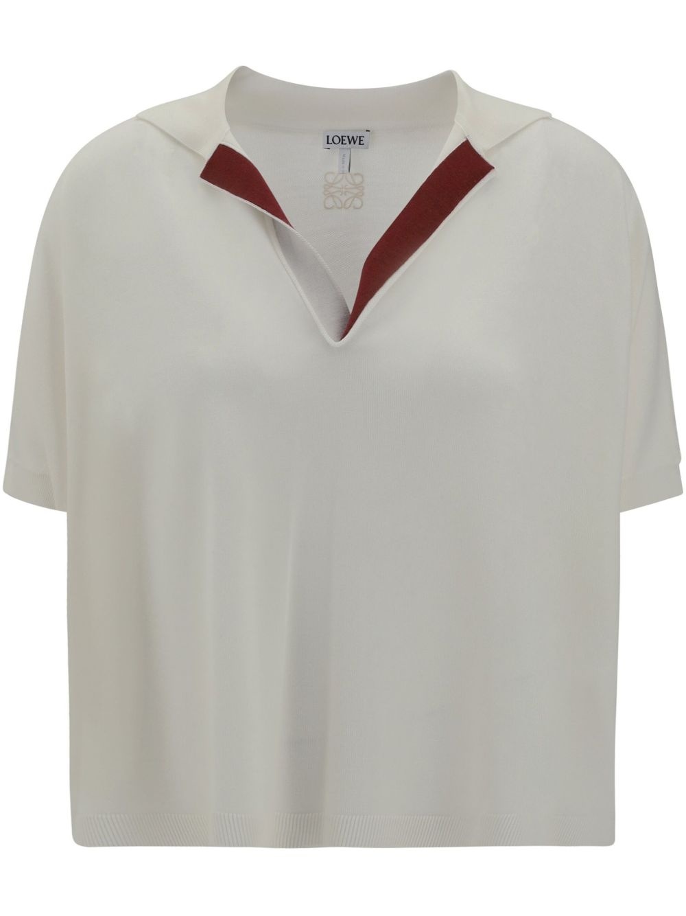 collar-detail short-sleeve top Highlights - Off-white - Contrasting collar design - V-neckline - Short sleeves - Relaxed silhouette - Ribbed hem detail - Lightweight feel - Easy styling options Made in Italy Composition Wool 100% Washing instructions Read Manufacturer Guidelines