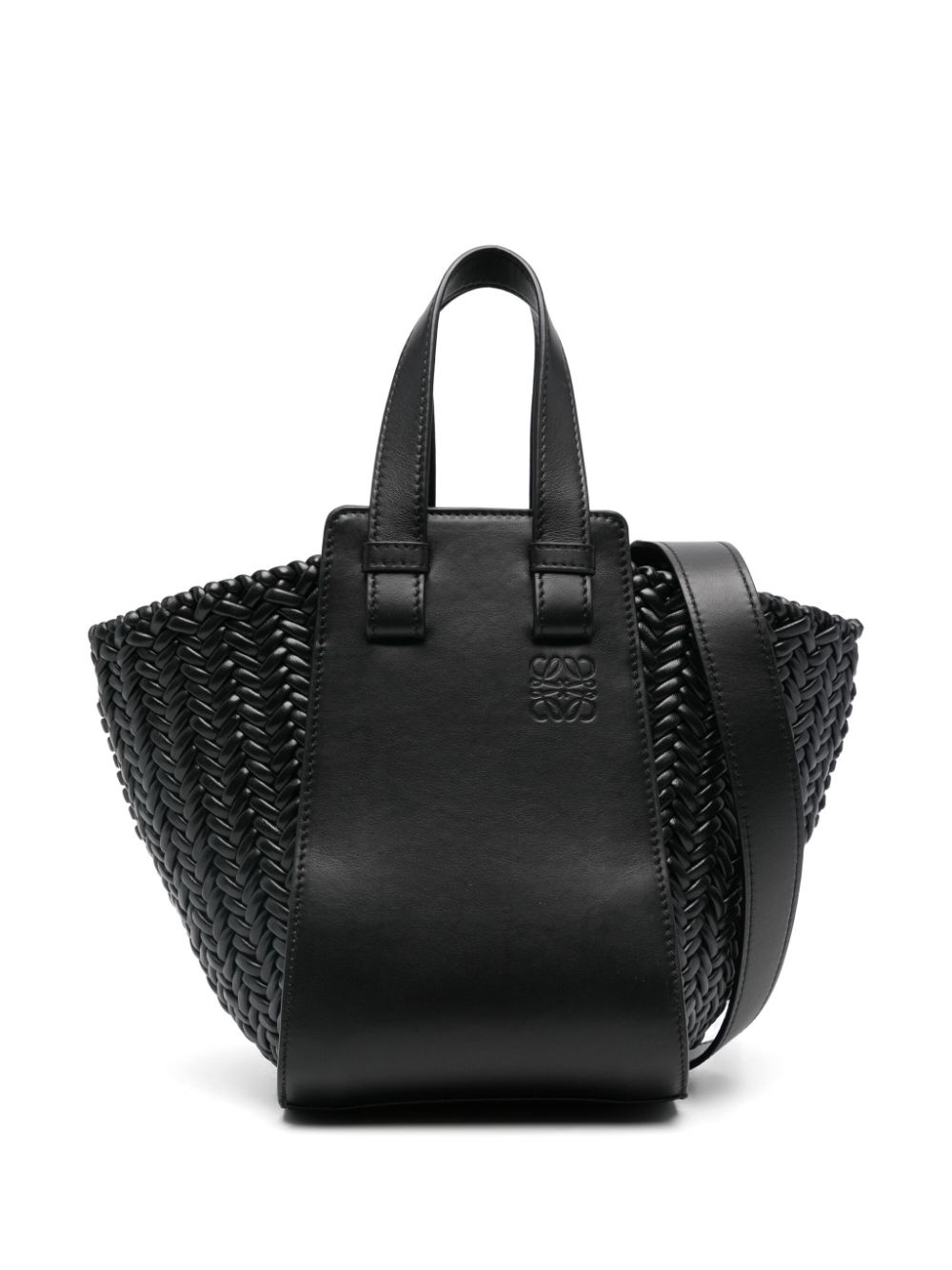 Hammock tote bag Highlights - Black - Calf leather - Interwoven design - Lobster claw fastening - Two top handles - Adjustable detachable shoulder strap - Signature debossed anagram motif - Main compartment - Debossed internal logo Imported Composition Outer: Lamb Skin 100%, Calf Leather 100% SIZE & FIT Model measurements Height 5 ft 10 in(1.77 m) Bust/Chest 33.07 in(84 cm) Hips 34.64 in(88 cm) Waist 23.22 in(59 cm) Measurement DEPTH 7.7 in(19.5 cm) HEIGHT 8.19 in(20.8 cm) WIDTH 5.7 in(14.4 cm) HANDLE 3.93 in(10 cm) STRAP 33.46 in(85 cm)
