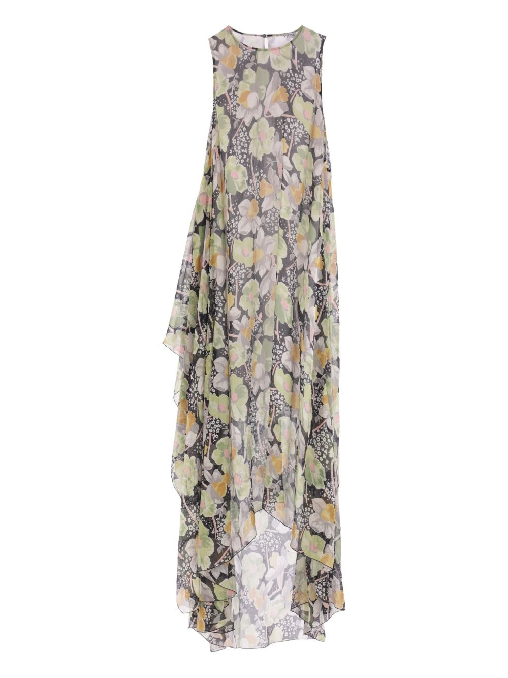 Daffodil.print maxi dress Highlights - Black - Single rear button fastening - Crew neck - Sleeveless - Ruffled detailing Imported Composition Silk 100%