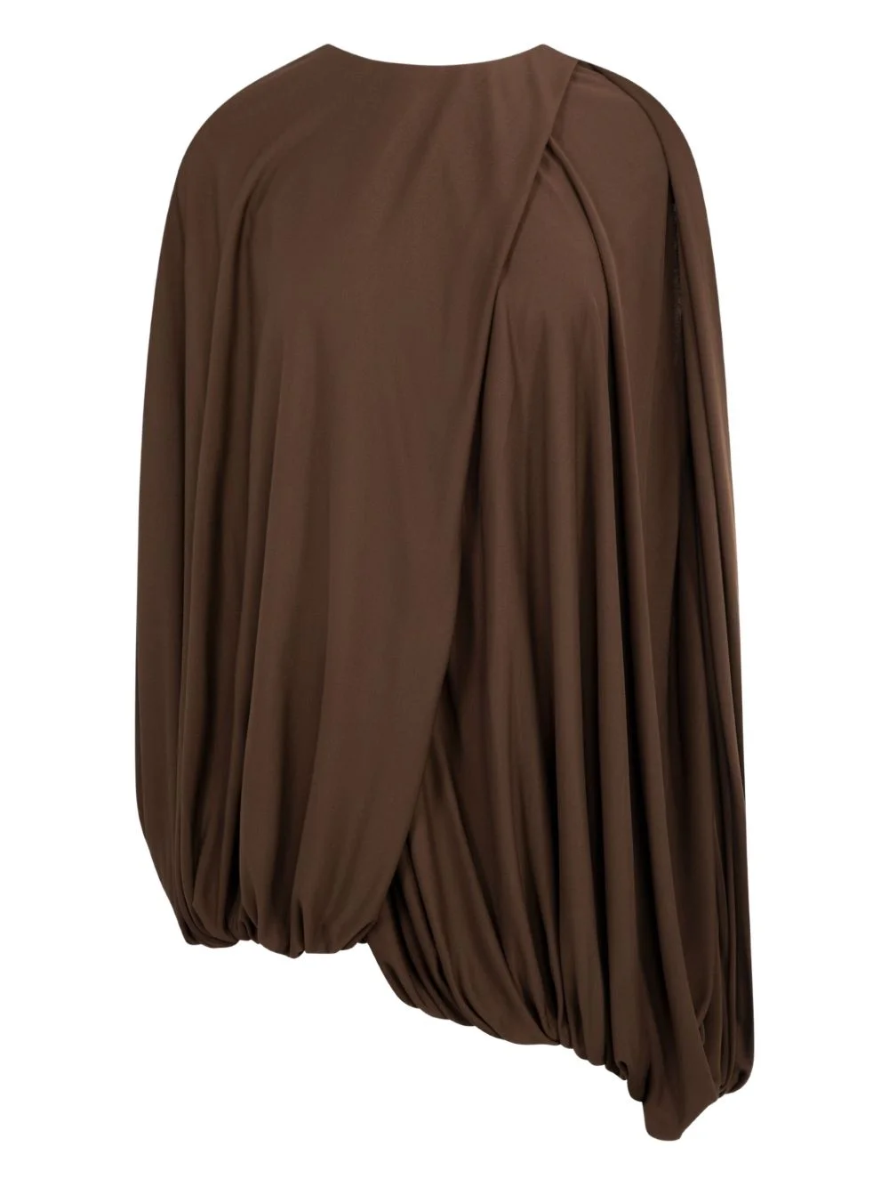 draped blouse Highlights - Brown - Draped design - Gathered detailing - Asymmetrical hem - Round neck - Keyhole back detail Made in Italy Composition Silk 100%, Cotton 100% Washing instructions Read Manufacturer Guidelines