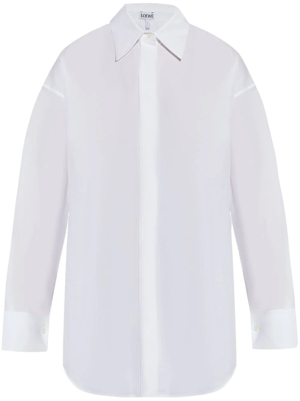 draped cotton shirt Highlights - White - Cotton - Poplin texture - Concealed front button fastening - Classic collar - Long sleeves - Batwing sleeve at one side - Buttoned cuffs - French cuffs - Signature embroidered anagram motif - Curved hem Made in Italy Composition Cotton 100% SIZE & FIT FittingInformation Designed to be unstructured, offering a loose fit throughout Made from a midweight non-stretch fabric