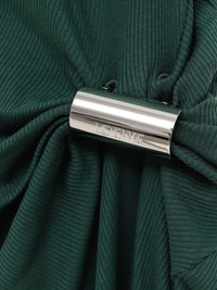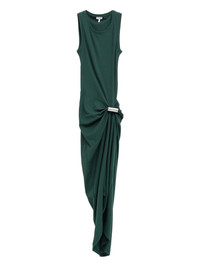 draped fine-ribbed dress Highlights - Dark green - Ribbed texture - Draped design - Asymmetrical hem - Sleeveless - Silver-tone hardware Imported Composition Cotton 100% Washing instructions Read Manufacturer Guidelines