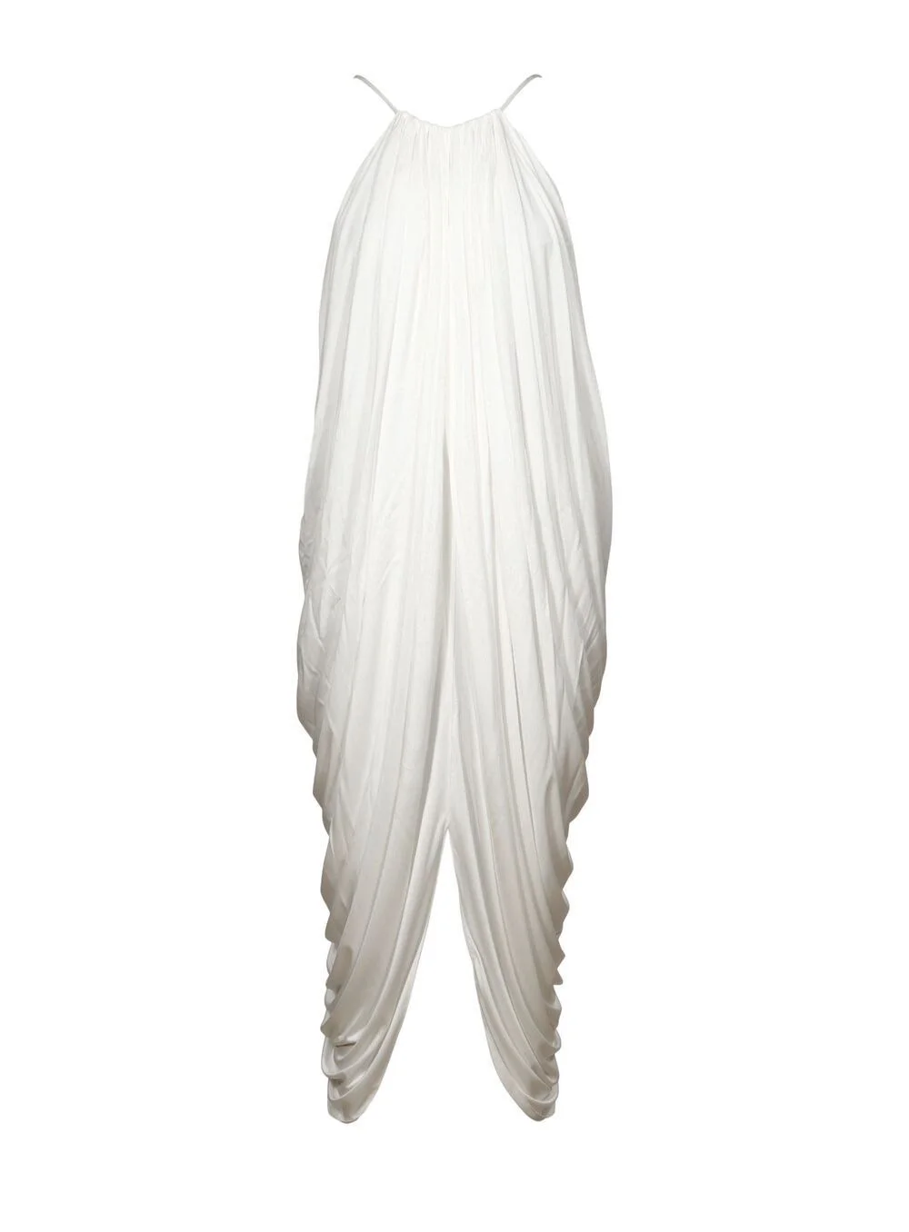 draped midi dress Highlights - White - Draped design - Spaghetti straps - Gathered detail - Sleeveless - Open leg Made in Italy Composition Silk 100% Washing instructions Read Manufacturer Guidelines