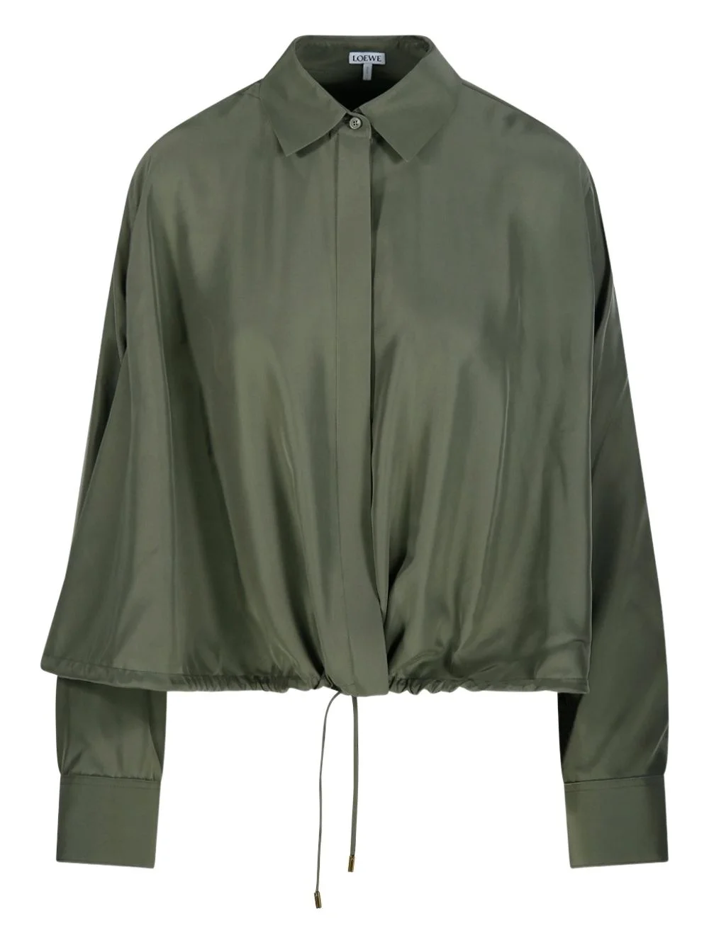 drawstring-hem shirt Highlights - Khaki green - Drawstring hem - Long sleeves - Button fastening Made in Italy Composition Silk 100% Washing instructions Read Manufacturer Guidelines