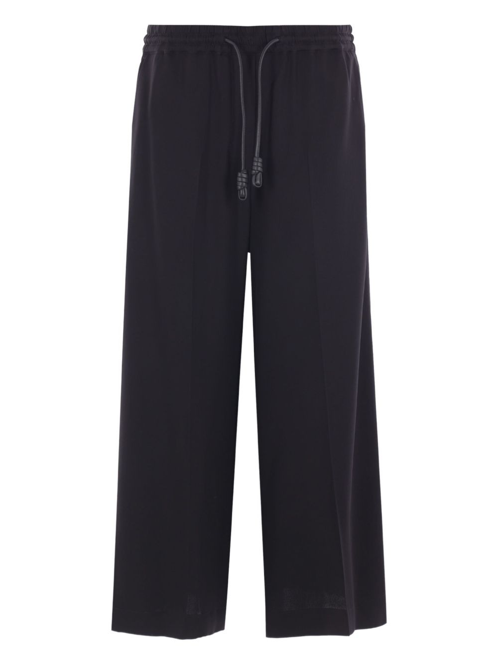 drawstring trousers Highlights - Black - Drawstring fastening - Straight hem Imported Composition Outer: Polyester 100%, Calf Leather 100%, Viscose 96%, Elastane 4% Lining: Cotton 100% Washing instructions Dry Clean Only