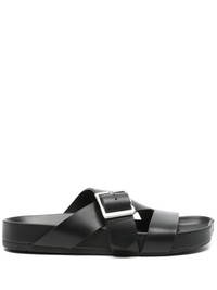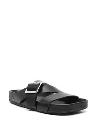 Ease buckled sandals Highlights - Black - Slip-on style - Buckle fastening - Asymmetric toe - Flat rubber sole Made in Italy Composition Lining: Calf Leather 100% Outer: Calf Leather 100% Sole: Rubber 100%