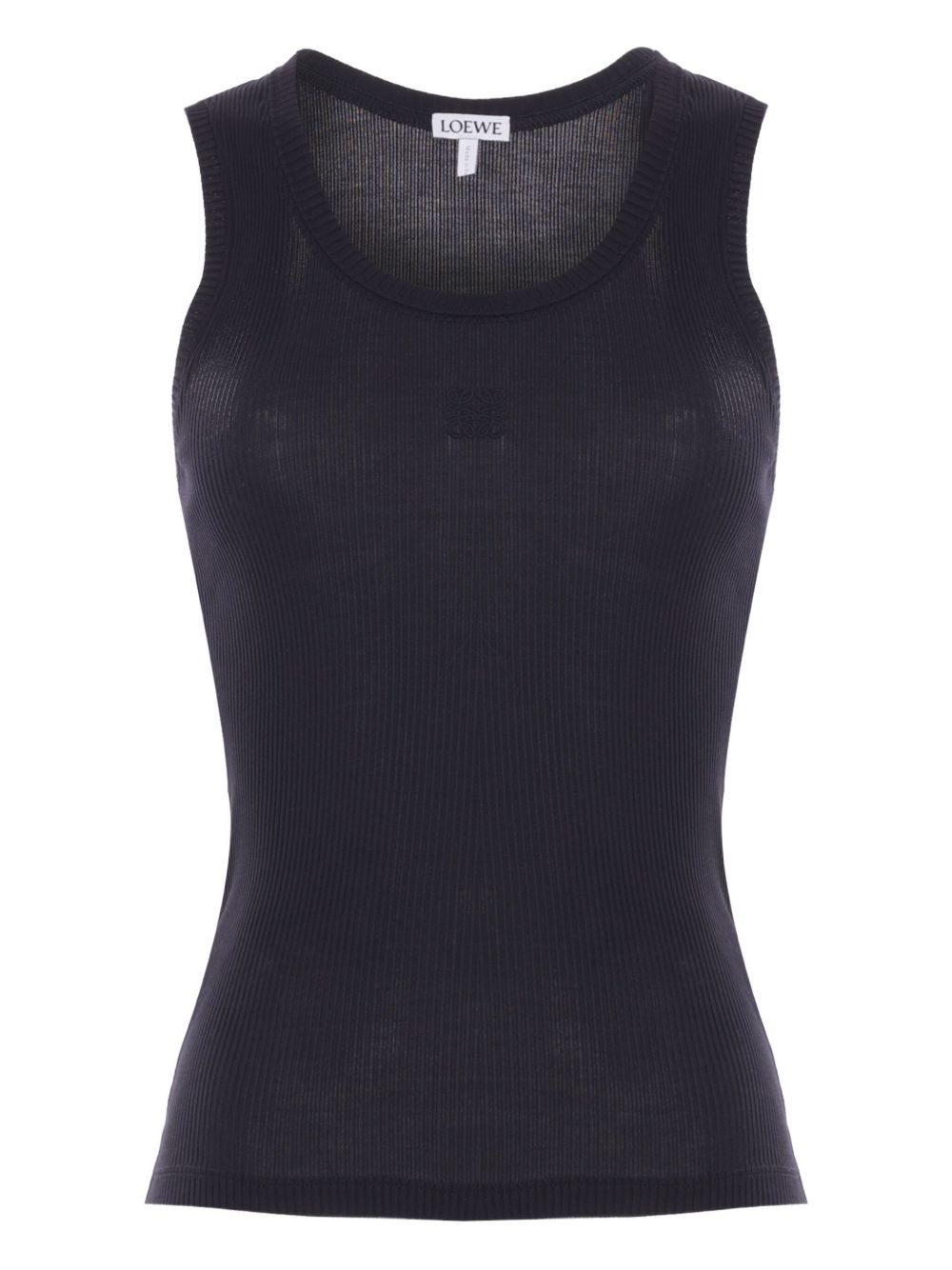 fine-ribbed top Highlights - Black - Ribbed texture - Round neck - Sleeveless - Embroidered logo Imported Composition Silk 100% Washing instructions Read Manufacturer Guidelines