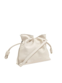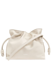 Flamenco leather clutch bag Highlights - Off-white - Nappa leather - Smooth grain - Logo stamp to the front - Knot detailing - Contrasting trim - Slouch body - Adjustable detachable shoulder strap - Concealed magnetic fastening - Top drawstring fastening - Main compartment Imported Composition Outer: Nappa Leather 100% SIZE & FIT Measurement DEPTH 3.54 in(9 cm) HEIGHT 7.08 in(18 cm) WIDTH 9.4 in(23.9 cm) STRAP 14.17 in(36 cm)