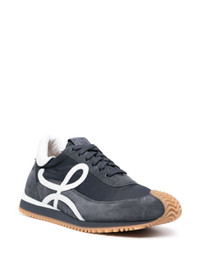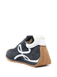 Flow Runner Anagram-motif sneakers Loewe's Flow Runner sneakers are presented here in navy blue suede and nylon. They're designed with a wavy rubber sole that curves around the heel and toe, while the signature Anagram motif adorns the sides. Highlights - Dark navy blue/white - Panelled design - Suede panelling - Tonal stitching - Signature anagram motif to the sides - Signature debossed anagram motif to the tongue - Logo stamp to the rear - Logo at the sole - Almond toe - Front lace-up fastening - Branded leather insole - Rubber outsole - This piece comes complete with a protective dust bag. Made in Italy Composition Lining: Calf Leather 100%, Nylon 100% Outer: Calf Leather 100%, Nylon 100% Sole: Rubber 100% SIZE & FIT Measurement HEEL 1.57 in(4 cm) Sole height 0.59 in(1.5 cm)