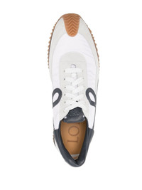 Flow Runner lace-up sneakers Highlights - Off-white/light grey - Calf suede/calf leather - Panelled design - Signature anagram print - Logo patch at the tongue - Branded heel counter - Front lace-up fastening - Gum-rubber sole Made in Italy Composition Outer: Calf Suede 100%, Calf Leather 100%, Fabric 100% Lining: Fabric 100%, Calf Leather 100% Sole: Rubber 100% SIZE & FIT Measurement HEEL 1.57 in(4 cm) Sole height 0.78 in(2 cm)
