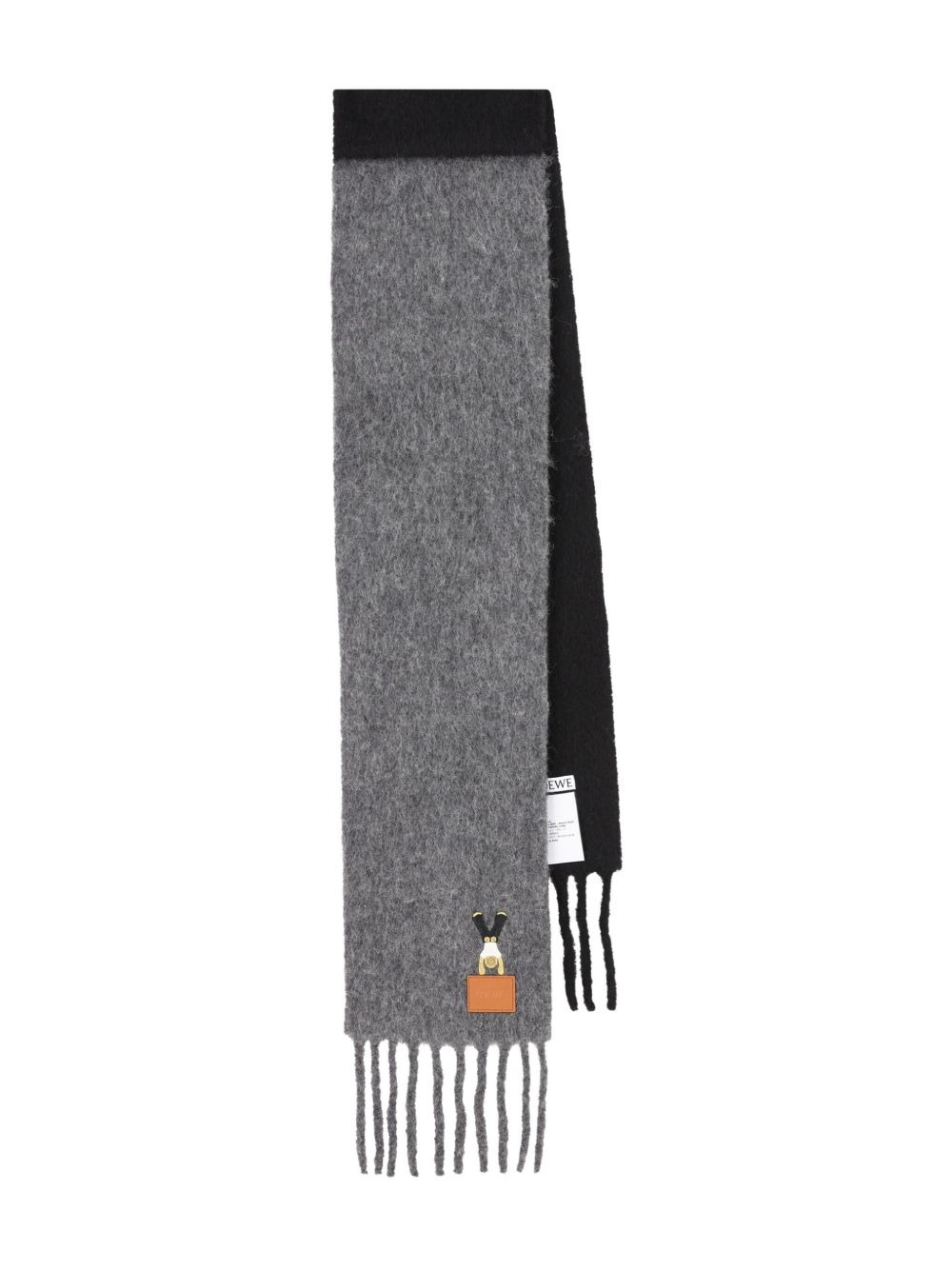 fringed wool scarf Highlights - Grey - Wool - Two-tone design - Fringed edges - Leather applique - Embroidered detail Made in Italy Composition Alpaca 60%, Wool 25%, Polyamide 15%