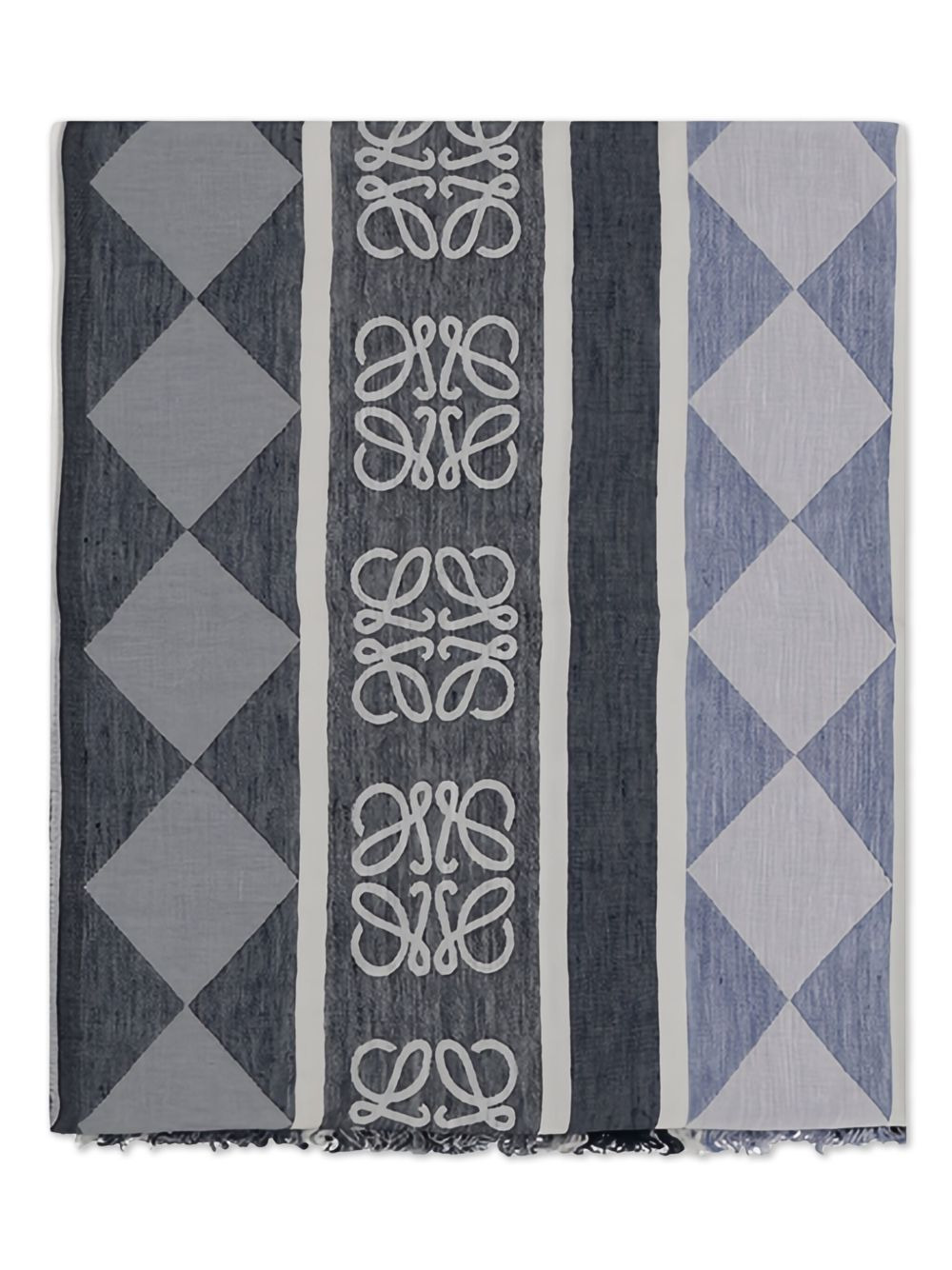 geometric-Anagram scarf Highlights - Blue grey - Geometric pattern - Anagram motif - Fringed edges - Linen cotton blend Made in Italy Composition Linen/Flax 50%, Cotton 50% SIZE & FIT Measurement LENGTH 35.43 in(90 cm) WIDTH 35.43 in(90 cm) Washing instructions Read Manufacturer Guidelines