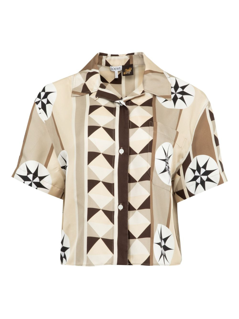 geometric-print short-sleeve shirt Highlights - Beige - Abstract geometric design - Button fastening - Chest pocket - Spread collar Imported Composition Silk 100% Washing instructions Read Manufacturer Guidelines