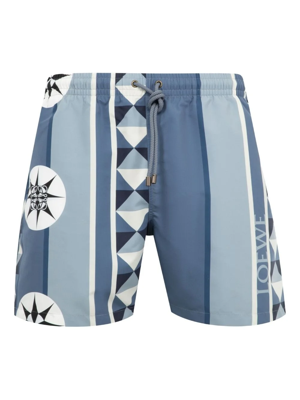 geometric-print swim shorts Highlights - Blue - Contrasting geometric patterns - Elasticated waistband - Drawstring fastening - Side pockets - Be mindful to try on swimwear over your own garments. Made in Italy Composition Polyester 100% Washing instructions Read Manufacturer Guidelines