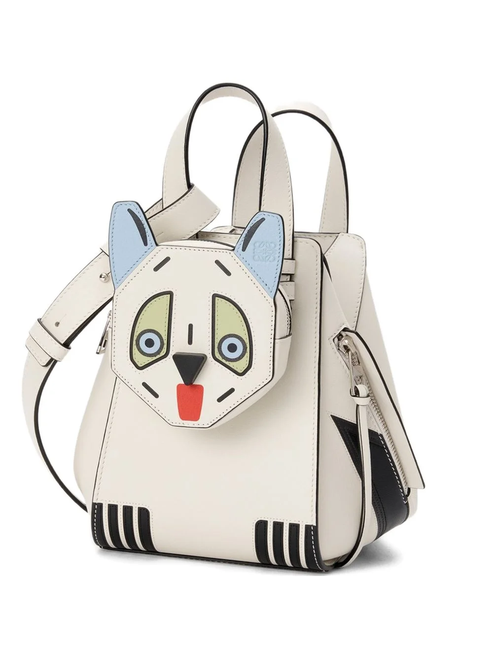 Hammock animal-face zipped tote bag Highlights - Soft white - Animal face embellishment - Top handles - Shoulder strap - Zipped side pocket - Black detailing Imported Composition Outer: Calf Leather 100% SIZE & FIT Measurement DEPTH 7.67 in(19.5 cm) HEIGHT 8.18 in(20.8 cm) WIDTH 5.66 in(14.4 cm) HANDLE 3.93 in(10 cm)
