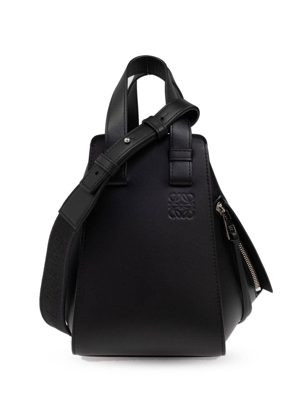 Hammock tote bag Highlights - Black - Calf leather - Signature debossed anagram motif - Adjustable shoulder strap - Two top handles - Hook fastening - Zip-fastening pocket - Multiple internal slip pockets Imported Composition Outer: Satin 100%, Calf Leather 100% SIZE & FIT Measurement DEPTH 7.67 in(19.5 cm) HEIGHT 8.18 in(20.8 cm) STRAP 18.5 in(47 cm) WIDTH 5.66 in(14.4 cm) HANDLE 3.93 in(10 cm)