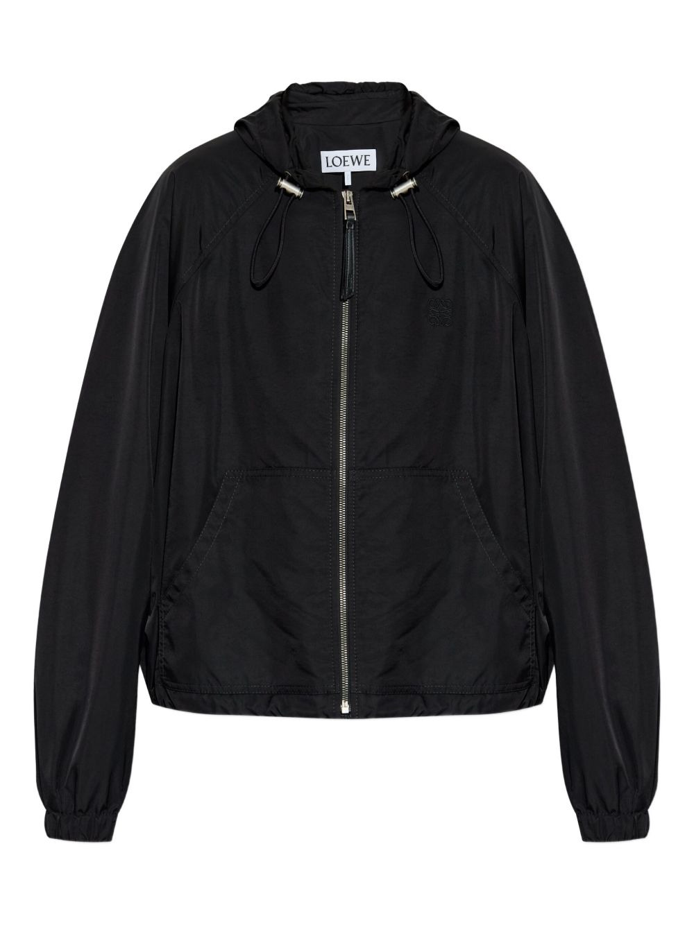 hooded drawstring bomber jacket Highlights - Black - Zip front fastening - Drawstring hood - Elasticated cuffs - Embroidered logo Made in Italy Composition Cupro 100% Washing instructions Read Manufacturer Guidelines