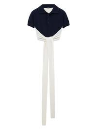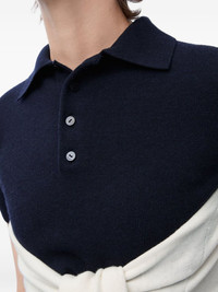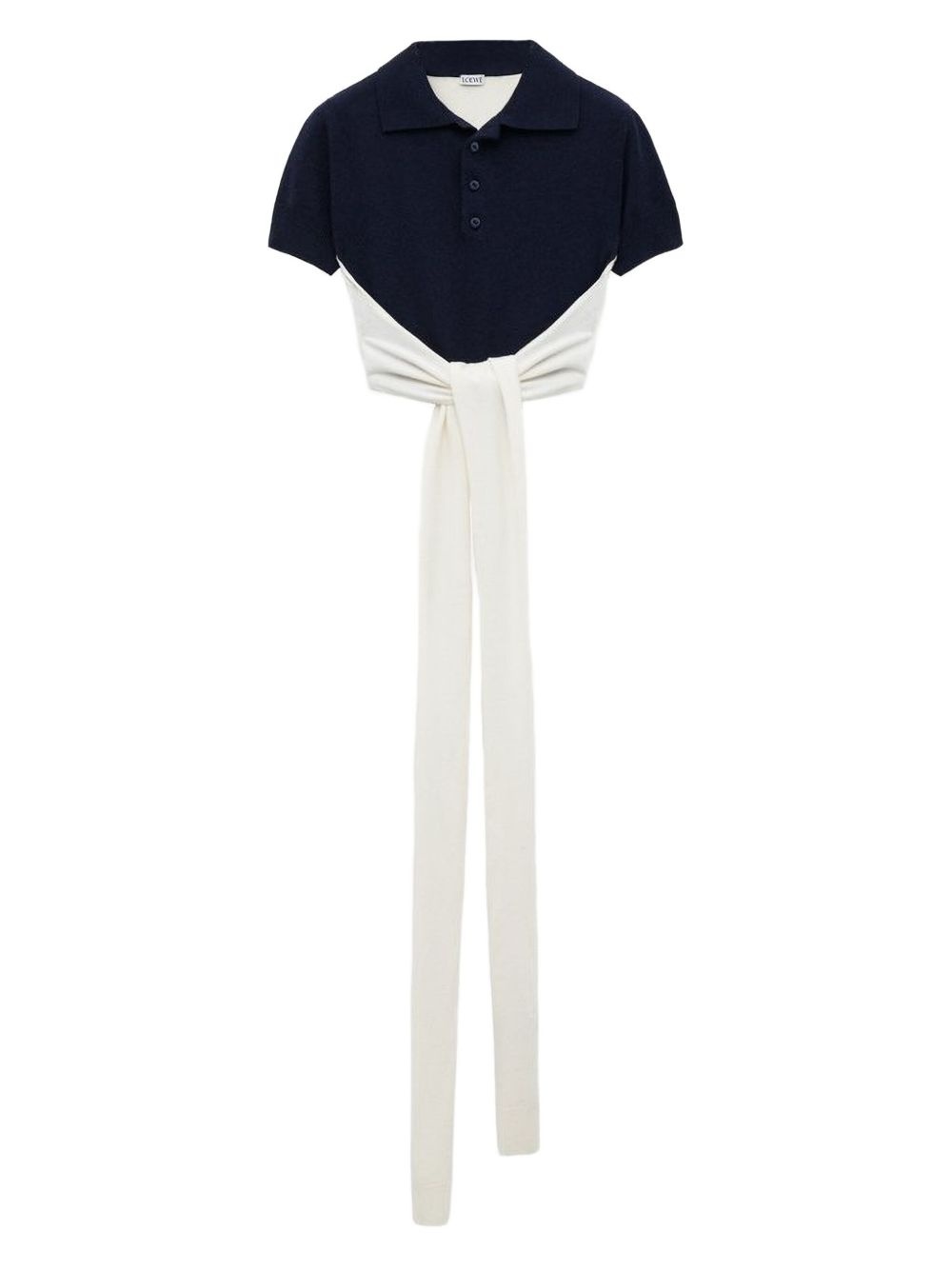 knot-detail polo top Highlights - Navy blue - Contrasting tie detail - Short sleeves - Polo collar - Short front button fastening - Open back Made in Italy Composition Wool 78%, Cashmere 18%, Polyamide 3%, Spandex/Elastane 1%