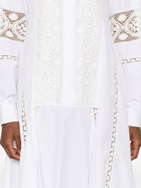 lace-panelling midi dress Highlights - White - Concealed front button fastening - Buttoned cuffs - Frayed hem - Long sleeves Imported Composition Cotton 100% SIZE & FIT Model measurements Height 5 ft 10 in(1.78 m) Bust/Chest 31.49 in(80 cm) Hips 37 in(94 cm) Waist 23.62 in(60 cm) FittingInformation Designed for a relaxed fit, this piece allows for comfort and movement when worn Made from a midweight non-stretch fabric