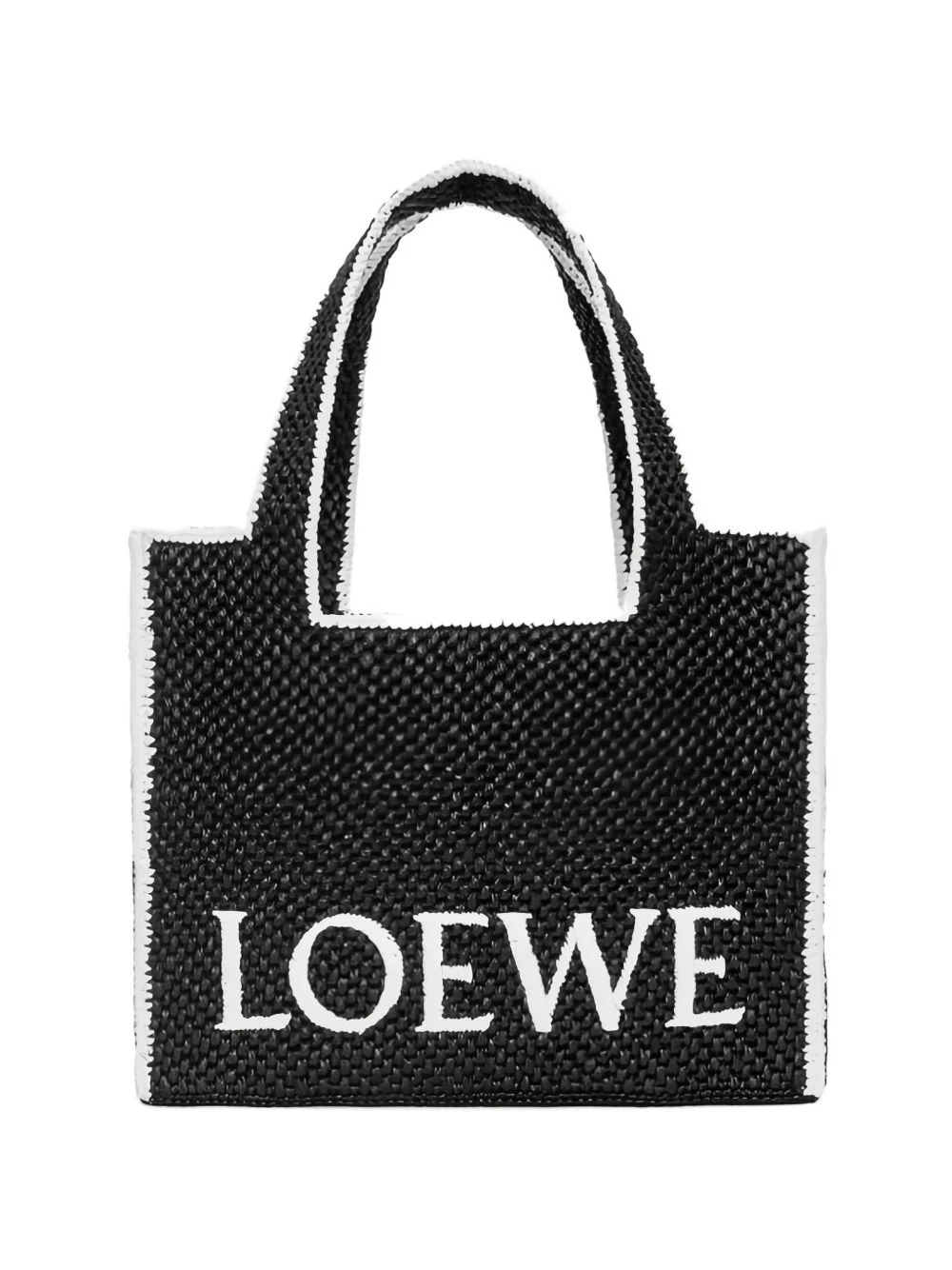 large Loewe Font raffia tote bag Highlights - Black - Raffia - Top handle Imported Composition Outer: Raffia 100% Lining: CALFSKIN 100% SIZE & FIT Measurement DEPTH 6.69 in(17 cm) HEIGHT 12 in(30.5 cm) WIDTH 14.37 in(36.5 cm)