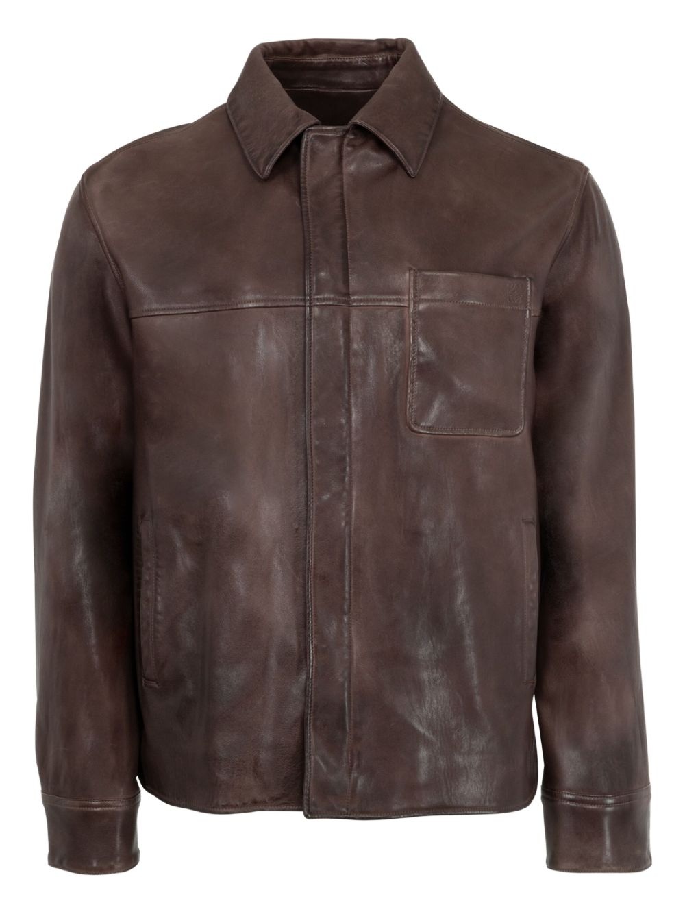 leather jacket Highlights - Auburn brown - Concealed front press-stud fastening - Chest patch pocket - Two side welt pockets - Spread collar Made in Italy Composition Lambskin 100% Washing instructions Specialist Cleaning