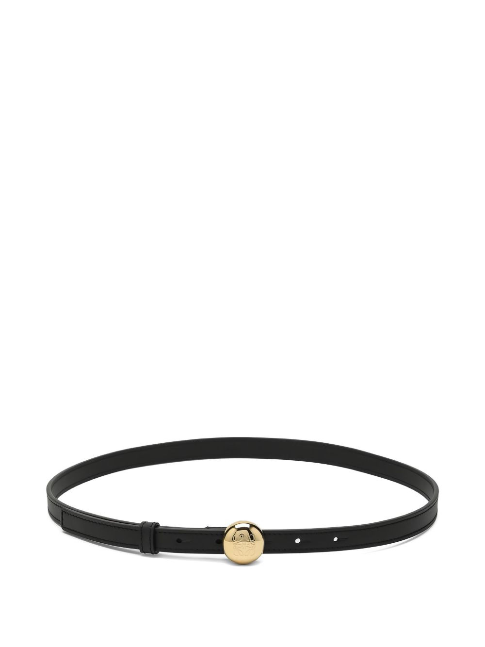 leather logo belt Highlights - Black - Leather construction - Gold-tone logo - Circular buckle - Slim width Imported Composition Smooth Leather 100% SIZE & FIT Measurement WIDTH 0.59 in(1.5 cm)