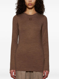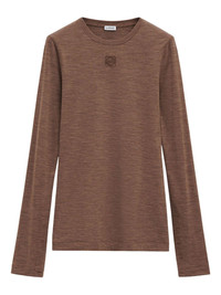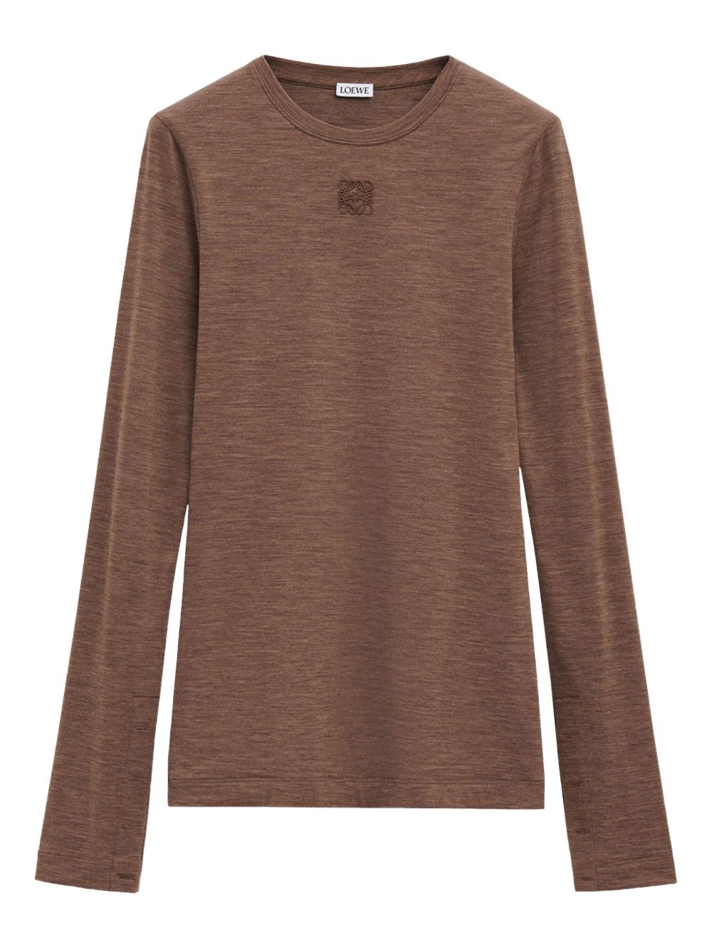 logo-embroidered T-shirt Highlights - Chocolate brown - Crew neck - Long sleeves - Straight hem - Melange effect Imported Composition Polyester 100%, Wool 95%, Spandex/Elastane 5%