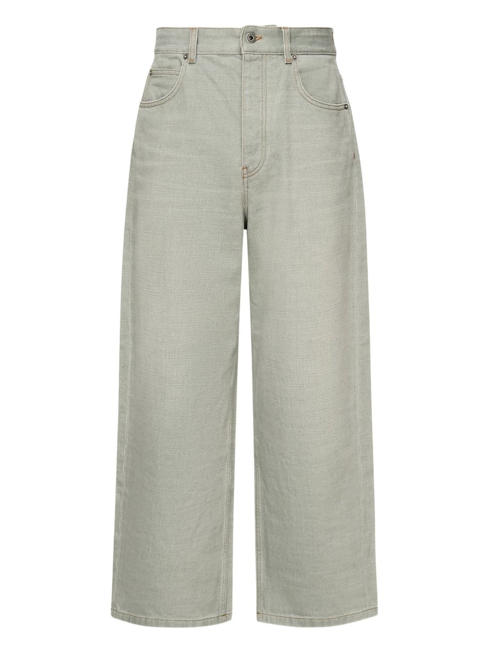 logo-patch jeans Highlights - Green - Cotton - Logo patch - Five pockets - Button fastening - Belt loops Made in Italy Composition Calf Leather 100%, Cotton 100% Washing instructions Read Manufacturer Guidelines