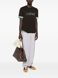 logo-print T-shirt Highlights - Cedar brown - Check trim - Logo print - Round neck - Short sleeves - Straight hem Made in Italy Composition Wool 100%, Cotton 100% SIZE & FIT Model measurements Height 6 ft 2 in(1.87 m) Bust/Chest 36.41 in(92.5 cm) Hips 37 in(94 cm) Waist 29.52 in(75 cm) Washing instructions Read Manufacturer Guidelines