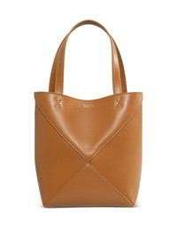 mini Puzzle Fold tote bag Highlights - Camel brown - Calf leather - Smooth grain - Panelled design - Logo stamp to the front - Two flat top handles - Adjustable detachable shoulder strap - Main compartment - Suede lining - Open top - This piece comes complete with a protective dust bag. Imported Composition Lining: Suede 100% Outer: Calf Leather 100% SIZE & FIT Measurement DEPTH 3.74 in(9.5 cm) HANDLE 5.51 in(14 cm) HEIGHT 7.87 in(20 cm) WIDTH 6.49 in(16.5 cm)
