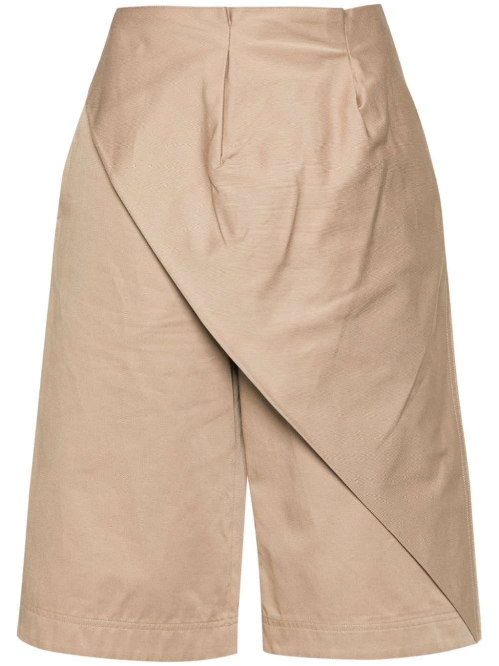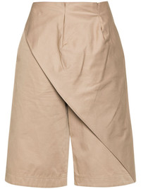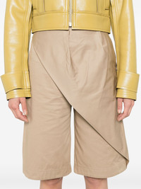 overlapping faille pleated shorts Highlights - Camel brown - Cotton - Faille - Pleat detailing - Overlapping panel - Two side welt pockets - Rear welt pocket - Debossed logo to the rear - Thigh-length - Concealed side zip fastening Made in Italy Composition Cotton 100%, Calf Leather 100% SIZE & FIT Model measurements Height 5 ft 10 in(1.77 m) Bust/Chest 31.49 in(80 cm) Hips 35.82 in(91 cm) Waist 25.98 in(66 cm) FittingInformation Designed for a loose fit, offering comfort and movement when worn Made from a midweight non-stretch fabric This piece fits true to size – take your usual size