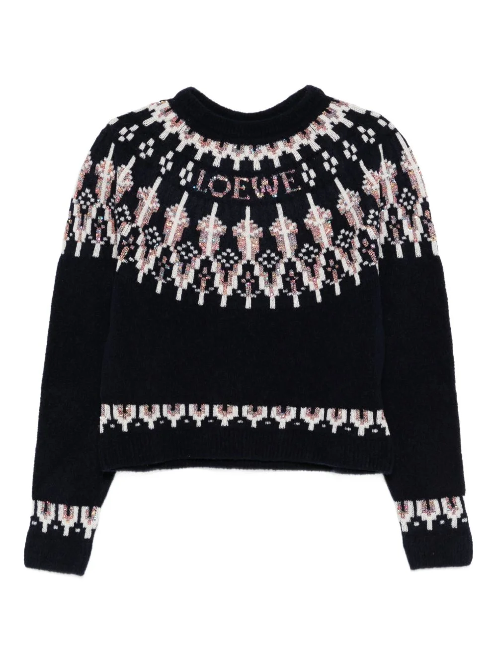 patterned crew-neck sweater Highlights - Blue - Patterned design - Crew neck - Long sleeves - Ribbed cuffs - Ribbed hem Made in Italy Composition Wool 64%, Polyamide 35%, Elastane 1% Washing instructions Dry Clean Only