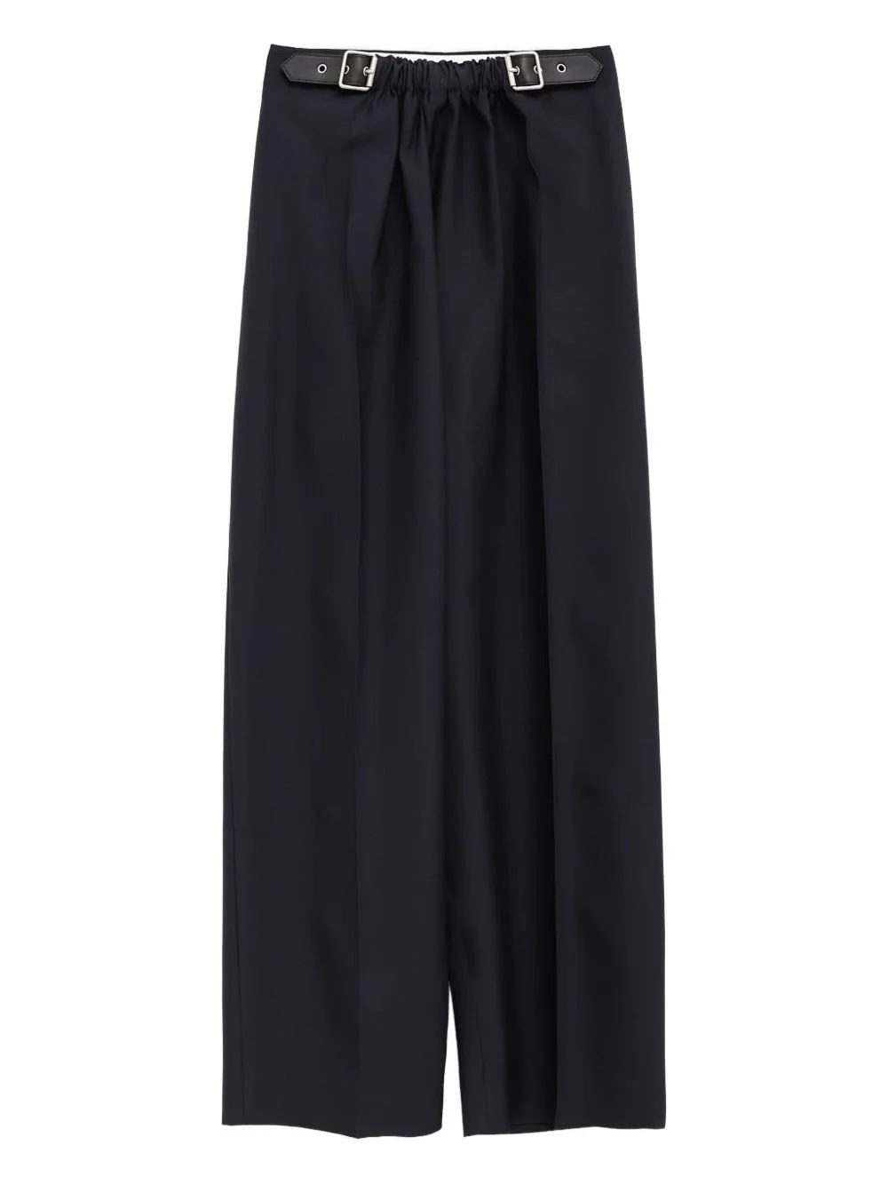 pleated leather-belt trousers Highlights - Navy blue - Pleated front - Elasticated waistband - Leather belt - Silver buckle - Straight leg Made in Italy Composition Fabric 100% Washing instructions Read Manufacturer Guidelines