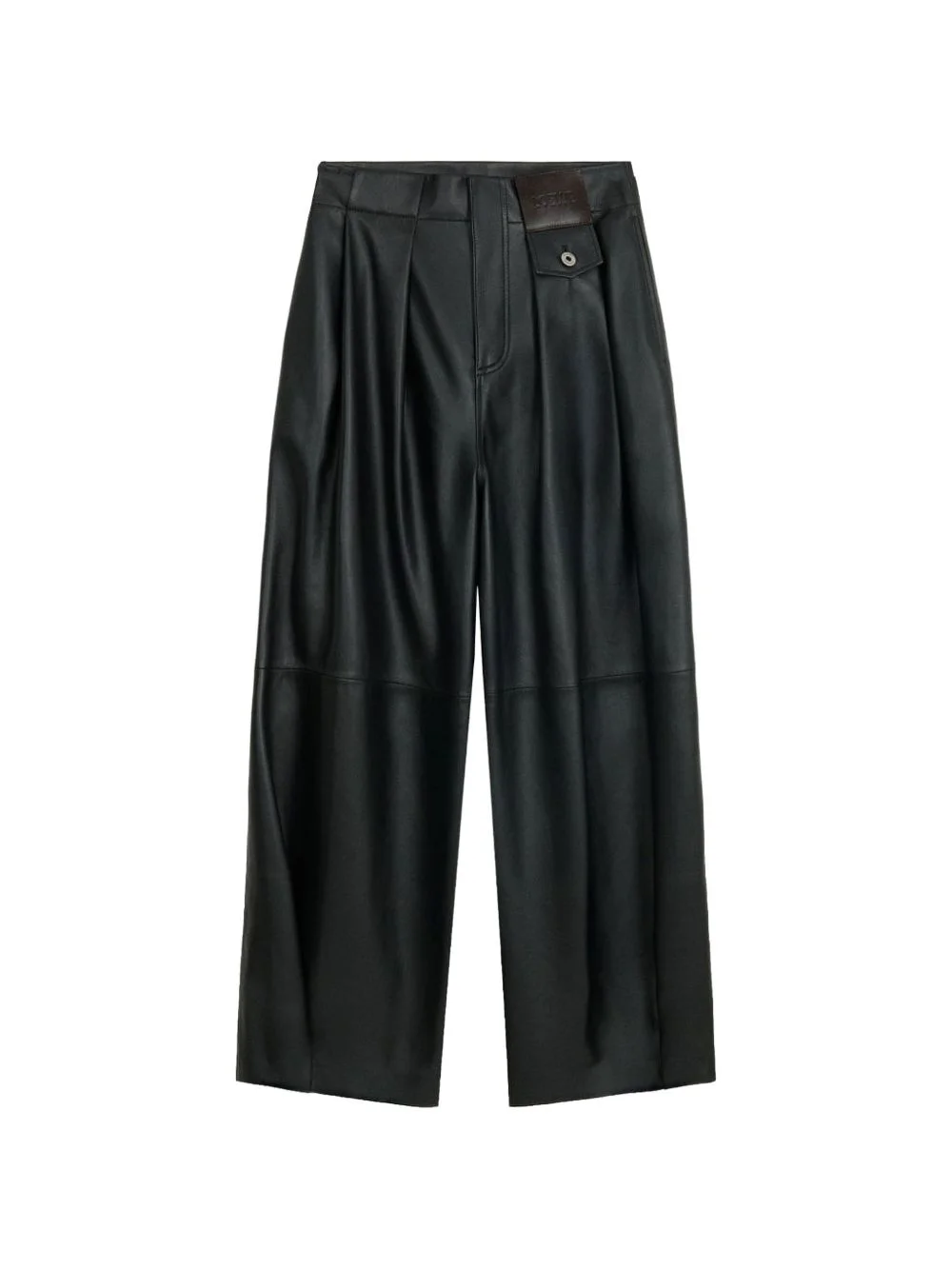 pleated leather trousers Highlights - Black - Rear patch pocket - Seam pockets - Pleats - Buttoned coin pocket - Loose leg - Panelled design Imported Composition Lambskin 100% Washing instructions Specialist Cleaning