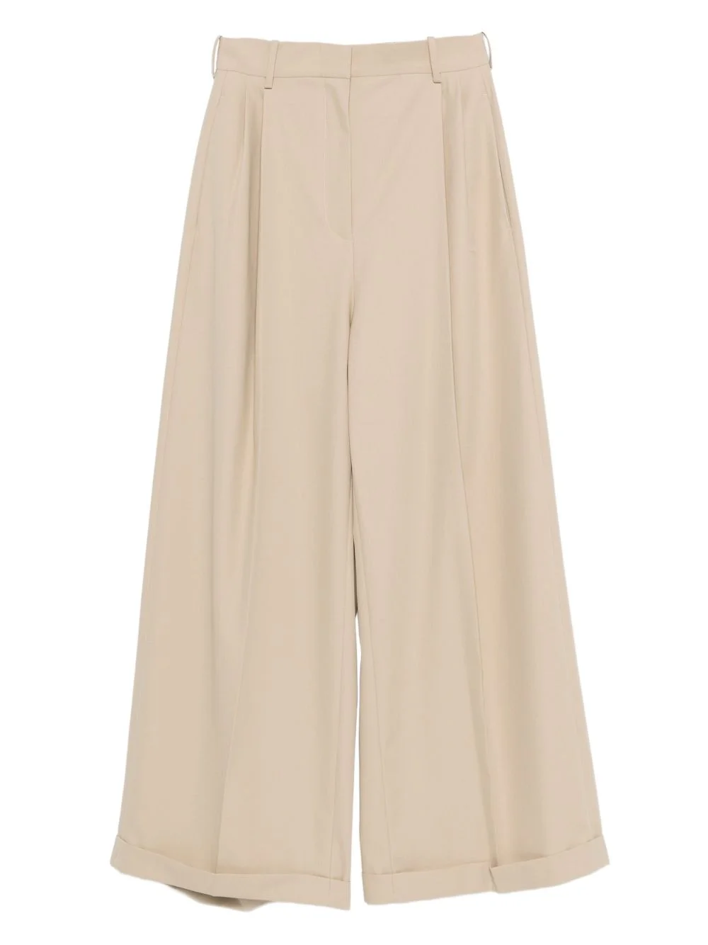 pleated trousers Highlights - Light beige - Pleat detailing - Turn-up ankles - Wide leg - High-waisted - Belt loops Made in Italy Composition Fabric 100% SIZE & FIT Model measurements Height 5 ft 11 in(1.8 m) Bust/Chest 30.7 in(78 cm) Hips 35.23 in(89.5 cm) Waist 25.19 in(64 cm) Washing instructions Read Manufacturer Guidelines