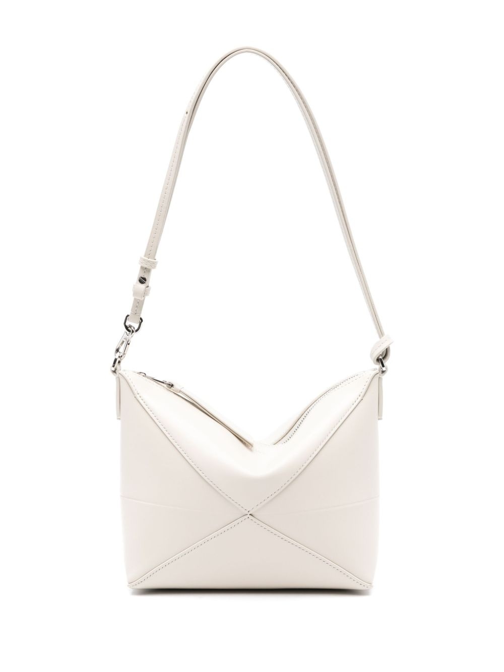 Puzzle Fold leather clutch bag Highlights - Chalk white - Calf leather - Smooth grain - Decorative stitching - Logo stamp to the front - Top zip fastening - Leather top handles - Main compartment - This piece comes complete with a protective dust bag. Imported Composition Outer: Calf Leather 100% SIZE & FIT Model measurements Height 5 ft 11 in(1.8 m) Bust/Chest 32.67 in(83 cm) Hips 36.22 in(92 cm) Waist 24.4 in(62 cm) Measurement DEPTH 2.75 in(7 cm) HEIGHT 6.69 in(17 cm) STRAP 43.3 in(110 cm) WIDTH 9.05 in(23 cm)