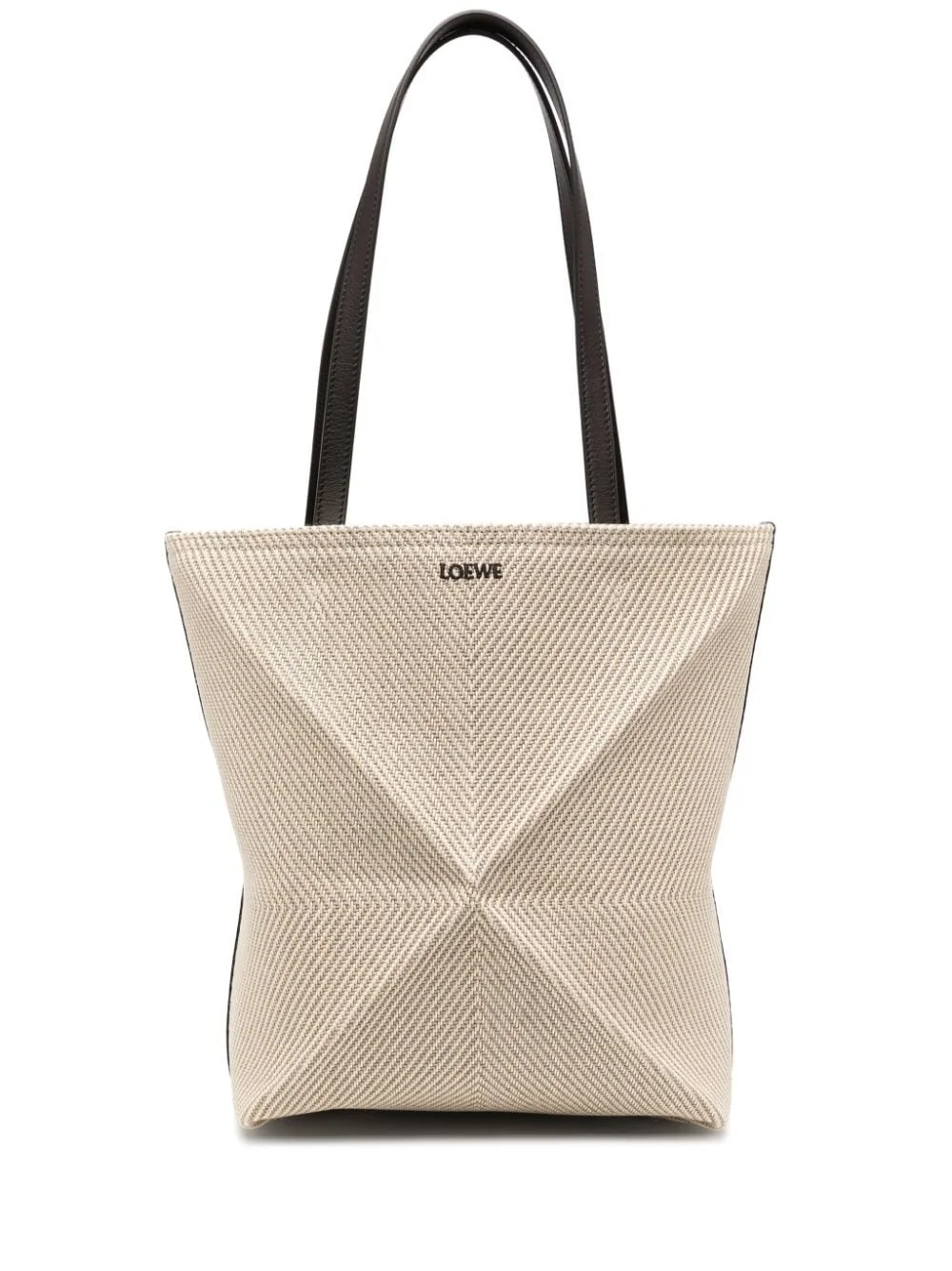 Puzzle Fold tote bag Highlights - Beige - Cotton/leather - Embroidered logo to the front - Leather trim - Two long top handles - Contrast lining - Main compartment - Open top Made in Italy Composition Leather 100% SIZE & FIT Measurement DEPTH 7.87 in(20 cm) HANDLE 9.84 in(25 cm) HEIGHT 10.62 in(27 cm) WIDTH 13.77 in(35 cm)