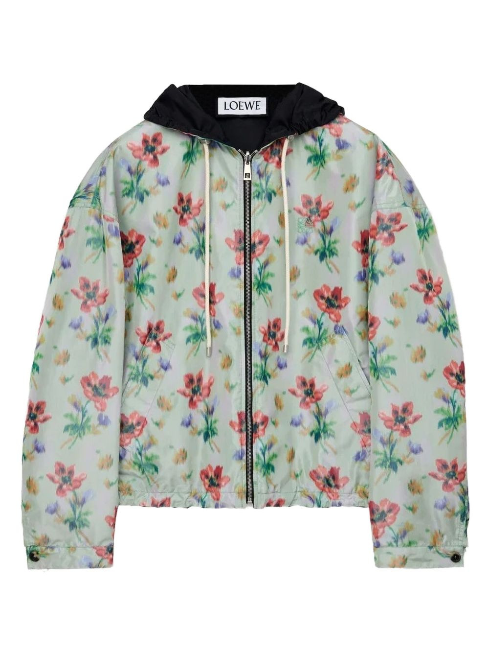 reversible floral-print hooded jacket Highlights - Pale green - Floral pattern - Zip front fastening - Drawstring hood - Long sleeves - Reversible Imported Composition Polyester 67%, Silk 33% Washing instructions Read Manufacturer Guidelines