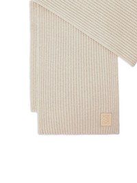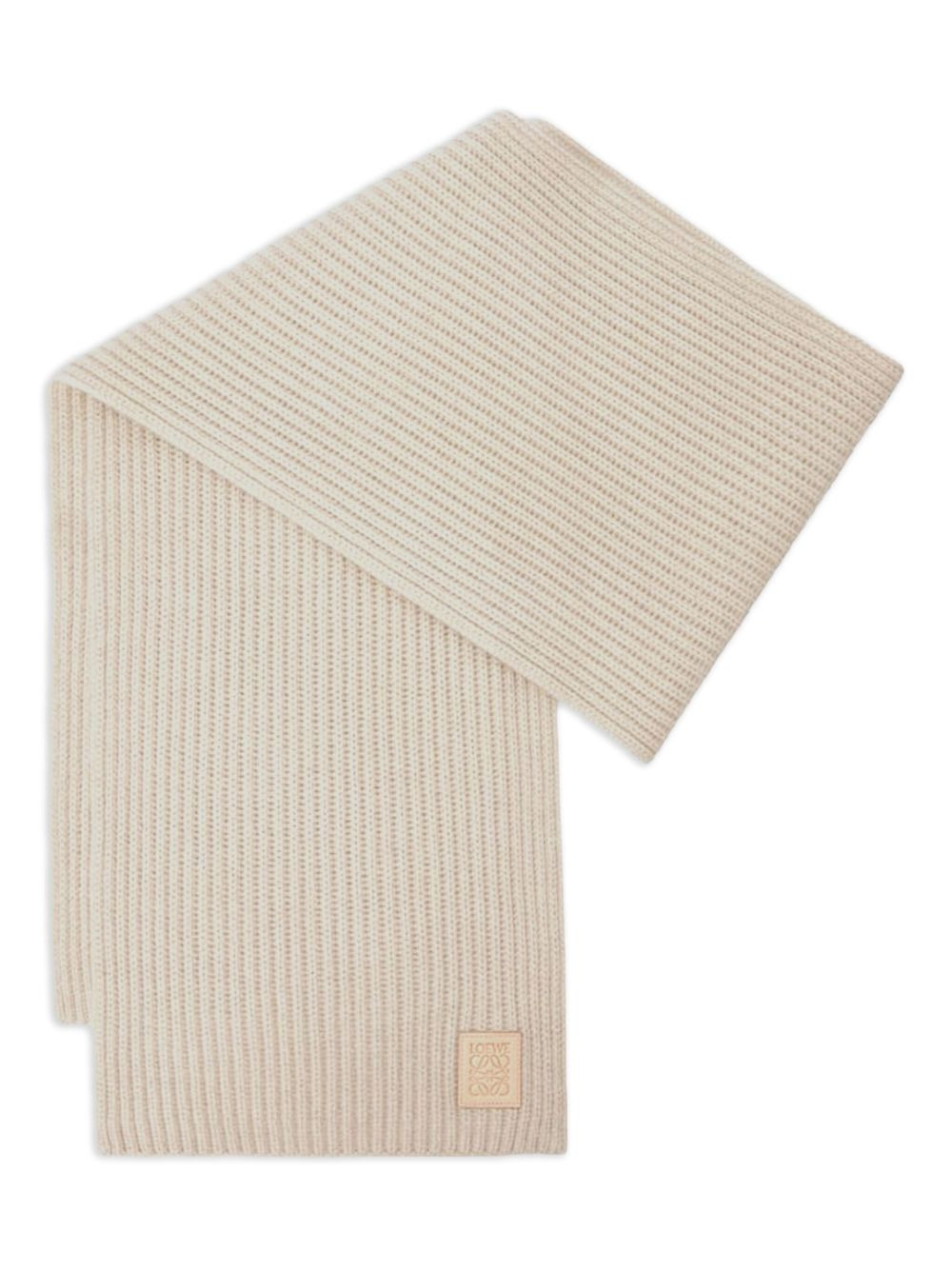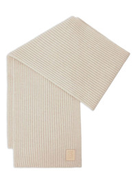 ribbed logo-plaque scarf Highlights - Beige - Ribbed texture - Leather logo patch - Rectangular shape - Long length - Knitted fabric Made in Italy Composition Cashmere 100% Washing instructions Read Manufacturer Guidelines