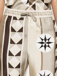 satin trousers Highlights - Almond beige - Elasticated drawstring waistband - Two side inset pockets - Rear patch pocket Made in Italy Composition Lining: Cotton 100%, Viscose 100% Outer: Silk 100% SIZE & FIT Model measurements Height 5 ft 10 in(1.78 m) Bust/Chest 32.67 in(83 cm) Hips 35.43 in(90 cm) Waist 23.22 in(59 cm) FittingInformation Designed for a straight-leg fit, these trousers allow for a close fit at the waist and an unrestricted, comfortable fit over the leg The elasticated waist allows for a comfortable fit Made from a lightweight non-stretch fabric