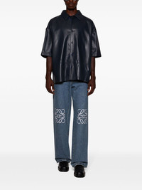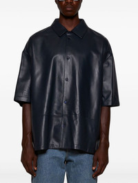 short sleeve leather shirt Highlights - Navy blue - Calf leather - Button fastening - Classic collar - Short sleeves - Straight hem Imported Composition Calf Leather 100%