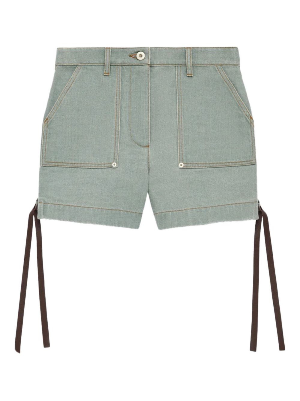 side-tie pocket shorts Highlights - Khaki green - Side ties - Patch pockets - Button fastening - Topstitching detail - Straight hemline Made in Italy Composition Cotton 100% Washing instructions Read Manufacturer Guidelines