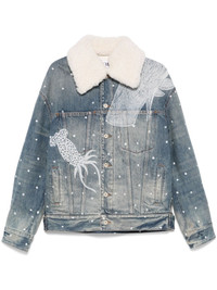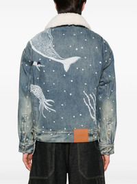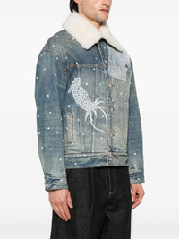 sketch-print denim jacket Highlights - Indigo blue - Front button fastening - Buttoned cuffs - Two chest patch pockets - Two side welt pockets Made in Italy Composition Outer: Cotton 100%, Calf Leather 100%, Lambskin 100% Lining: Polyester 65%, Cotton 35% SIZE & FIT Model measurements Height 6 ft 2 in(1.87 m) Bust/Chest 37.79 in(96 cm) Hips 37.79 in(96 cm) Waist 30.31 in(77 cm) FittingInformation Designed for a regular fit, allowing for a comfortably loose fit throughout the body The adjustable tabs allow for fitted preferences Sturdy and hard-wearing, this denim piece offers no stretch
