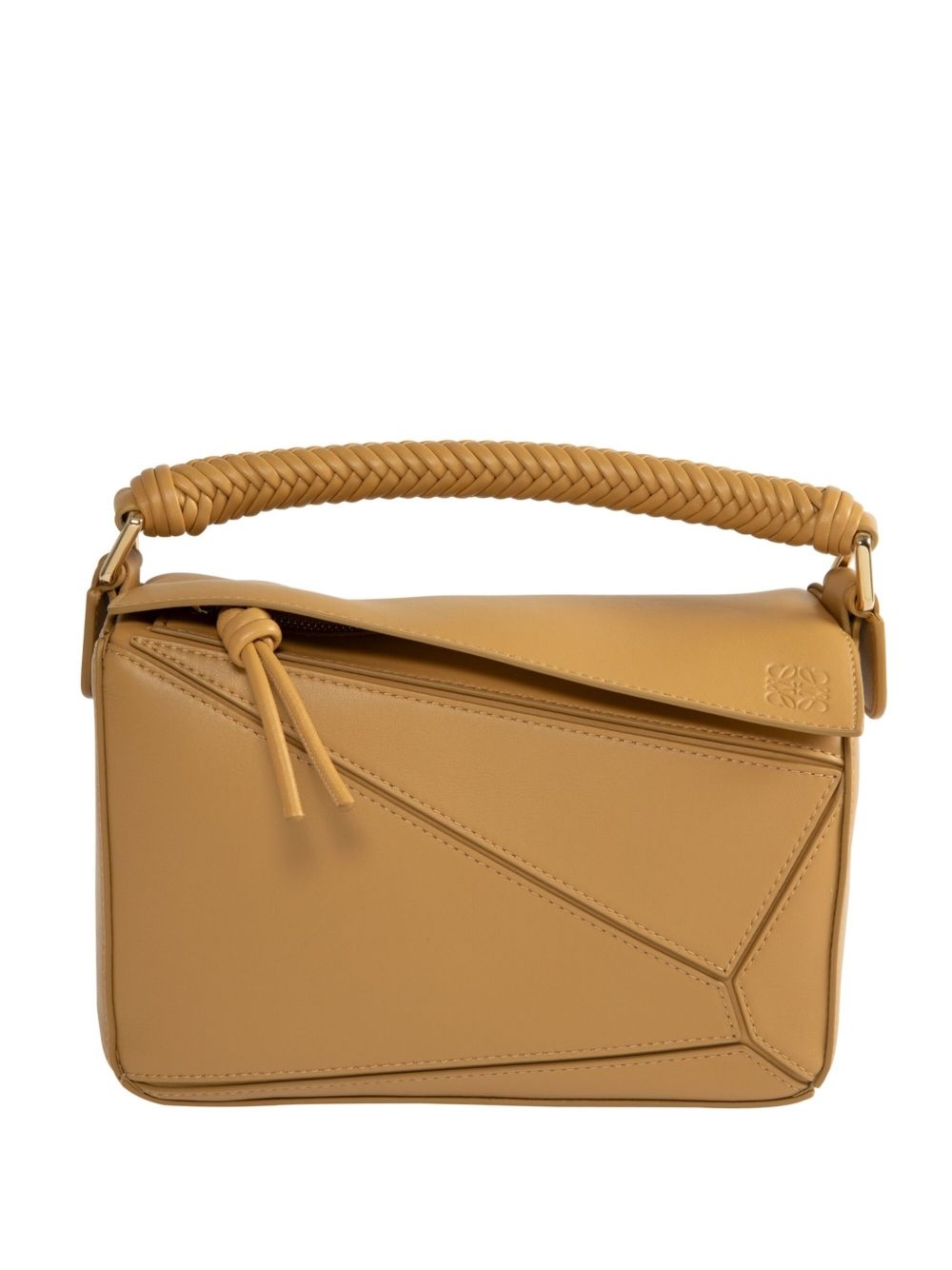 small Puzzle clutch bag Highlights - Caramel brown - Concealed top-zip fastening - Single braided top handle - Adjustable detachable shoulder strap - Internal slip pocket Made in Italy Composition Outer: Lambskin 100% SIZE & FIT Measurement DEPTH 4.13 in(10.5 cm) HEIGHT 6.49 in(16.5 cm) WIDTH 9.44 in(24 cm)