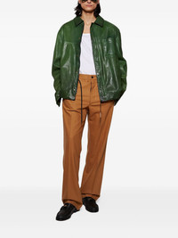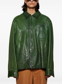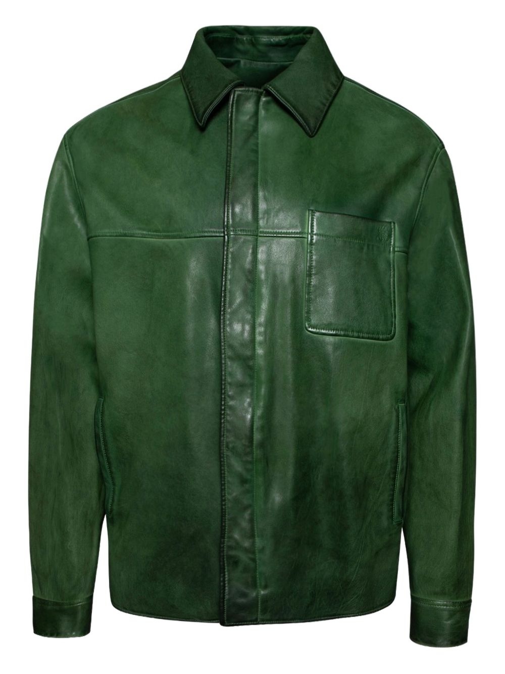 smooth-leather shirt jacket Highlights - Deep green - Point collar - Single chest pocket - Concealed zip and press-stud front - Long sleeves Made in Italy Composition Lambskin 100% Washing instructions Specialist Cleaning